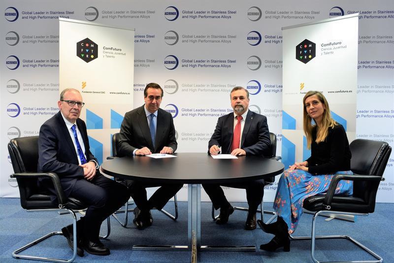 La Fundación General CSIC (FGCSIC) y Acerinox han suscrito un segundo acuerdo de colaboración en torno al programa ComFuturo, cuya tercera edición, como novedad, estará enmarcada en las Acciones Marie Sklodowska-Curie (MSCA) COFUND de la Comisión Europea.