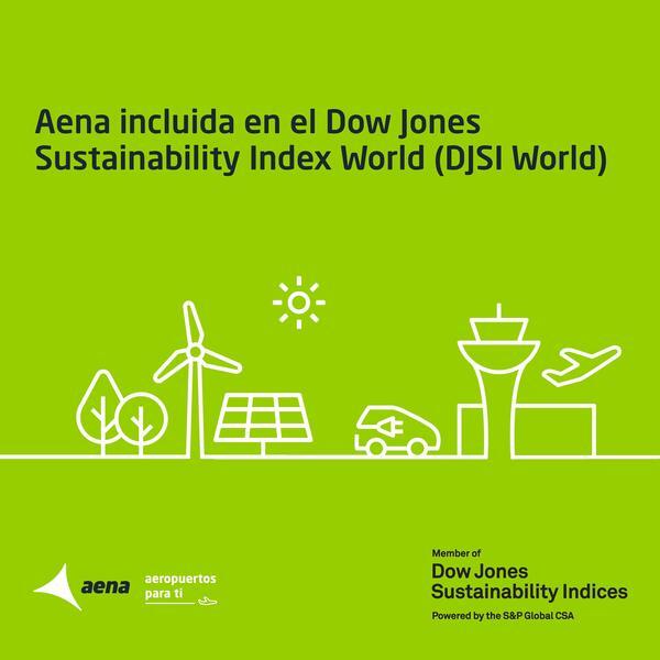 Aena ha sido incluida por primera vez en el Dow Jones Sustainability World Index, un índice con el que la compañía Standard & Poor's (S&P) Global evalúa el desempeño de las mayores empresas del mundo en términos de sostenibilidad.