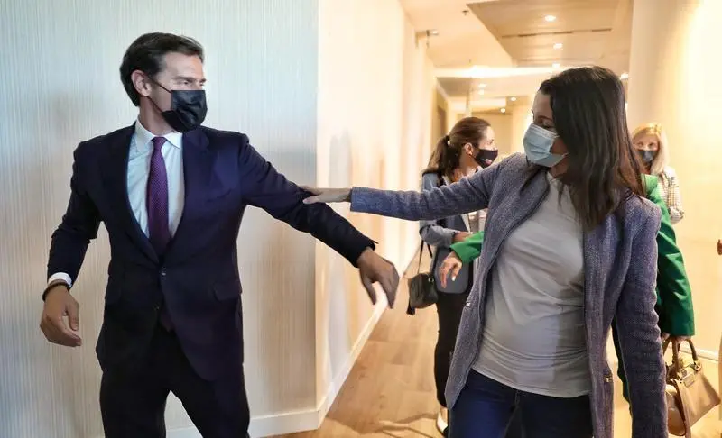 El expresidente de Ciudadanos, Albert Rivera, ha asistido este lunes a la intervención del vicepresidente de Andalucía, Juan Marín, en el Foro Turismo organizado por Europa Press, donde se ha reencontrado con la actual líder de la formación 'naranja', Inés Arrimadas. Además, ha mostrado su "orgullo" por el Ejecutivo de PP y Ciudadanos en Andalucía, del que ha dicho que espera que esa "estabilidad" dure "muchos años".