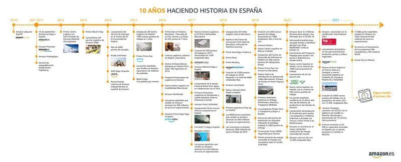 Amazon celebra este miércoles su décimo aniversario de su desembarco en España con su plataforma Amazon.es, acelerando el 'ecommerce', y desde entonces ha impulsado su presencia en el mercado nacional donde ha invertido más de 6.800 millones de euros, según ha informado el gigante del comercio electrónico en un comunicado.