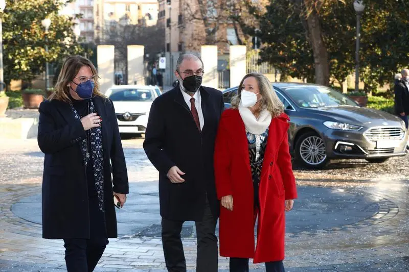 De visita en Zaragoza para participar en una reunión con empresarios sobre los fondos europeos, Calviño ha expresado que el Gobierno de España tiene "un plan de país" y ha emplazado a todos a "remar en la misma dirección" en todas las administraciones públicas, también las que dirige el PP.