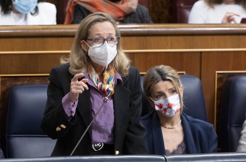 En la sesión de control al Gobierno en el Pleno del Congreso, la vicepresidenta ha defendido su política económica de las críticas de los diputados Elvira Rodríguez (PP) e Iván Espinosa de los Monteros (Vox), quienes han reprochado a Calviño que el Ejecutivo culpe exclusivamente a la guerra en Ucrania de la situación económica de los ciudadanos.