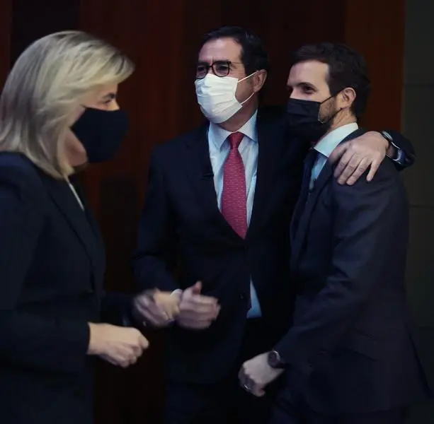 Tras asegurar que es "rara" la semana que no hayan hablado o no se hayan visto, Casado ha recalcado que es "perfectamente compatible" lo que hace la CEOE y el diálogo social con lo que hacen los partidos políticos como el suyo.
