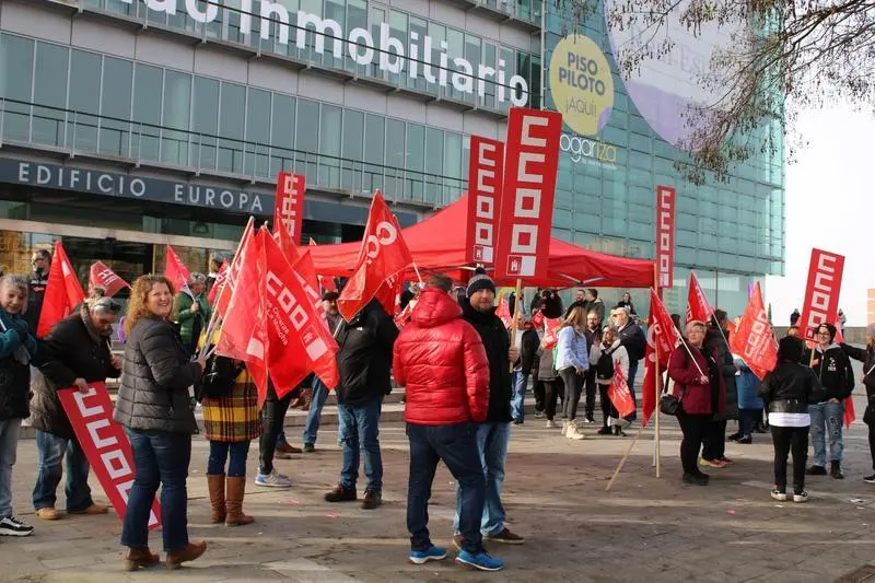 Aunque la huelga la ha convocado CCOO en solitario, también han aparecido banderas de UGT a las puertas de la empresa, donde los huelguistas se han ido concentrando desde la madrugada y a lo largo de toda la mañana.