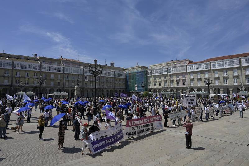 La protesta, finalizada en la Praza de María Pita, ha estado convocada por más de 70 entidades capitaneadas por la plataforma En Defensa do Común, pero también ha contado con el apoyo de organizaciones políticas como el BNG, la Marea Atlántica, la coalición Galicia en Común-Unidas Podemos.
