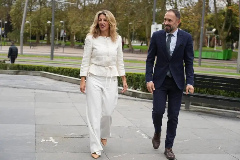 Díaz ha comparecido en rueda de prensa en el Palacio Euskalduna, junto a la vicelehendakari segunda y consejera de Trabajo y Empleo del Gobierno vasco, Idoia Mendia, y el comisario de la UE para el Empleo y los Derechos Sociales, Nicolas Schmit, en el marco de la Cumbre sobre Lugares de Trabajo Saludables 2022.
