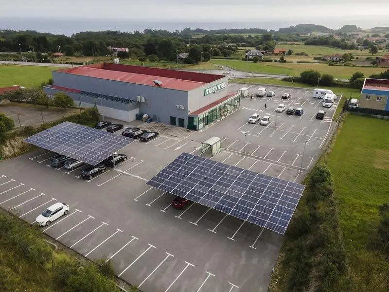 Las compañía EDP y Supermercados masymas (Hijos de Luis Rodríguez) han puesto en marcha su primera instalación solar en marquesinas solares para autoconsumo o aparcamientos fotovoltaicos en Cudillero (Asturias).