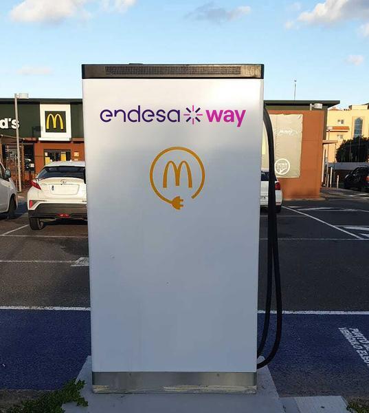 Endesa y McDonald's arrancaron su alianza a finales de 2019 para desplegar infraestructuras de recarga de vehículos eléctricos en los aparcamientos de sus restaurantes en España.