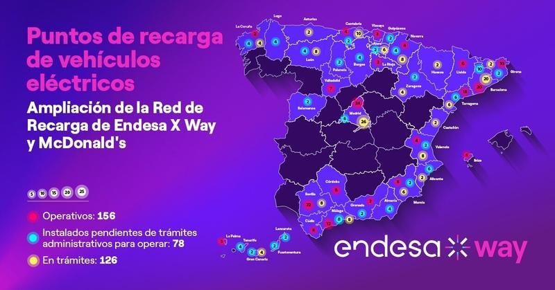 Para lo que resta de 2022, el objetivo de McDonald's y de Endesa X Way pasa por añadir a esa cifra de puntos de recarga ya en operación otros 150 cargadores y llegar a la mayoría de las provincias del país -38 de las 50-. Cerca del 47% de ellos ya están en fase de solicitud de todos los permisos necesarios.