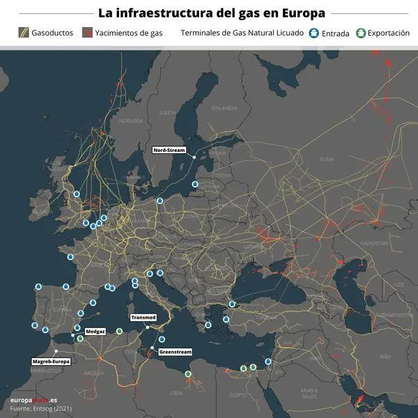 Por otra parte, las importaciones europeas de GNL "aumentarán un 65 por ciento interanual en 2022 hasta los 145bcm, millardos de metros cúbicos". Esto es así porque "la reducción de la demanda en Asia está dejando espacio para que Europa satisfaga su creciente demanda de GNL, debido a las restricciones por los confinamientos derivados del COVID en China y los elevados precios", han aseverado.