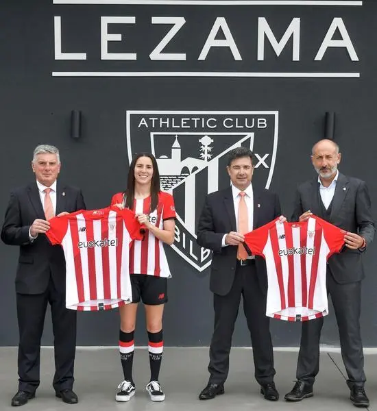 La jugadora Nekane Díez ha lucido la camiseta del equipo rojiblanco en el acto de firma, que se ha celebrado en las renovadas instalaciones de Lezama. El logotipo de Euskaltel lucirá en el frontal de la zamarra oficial de juego y en la de entrenamiento del primer equipo femenino.