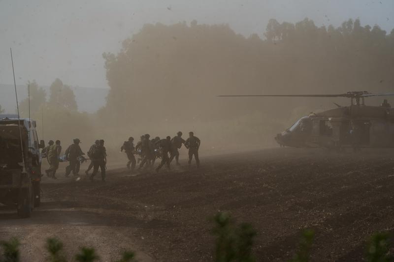ISRAEL-LEBANON-BORDER, Sept. 19, 2024 -- Injured Israeli soldiers are transfered to a helicopter near the Israeli northern border with Lebanon, on Sept. 19, 2024. Two Israeli soldiers were killed on Thursday in cross-border drone and missile attacks carried out by the Lebanese Hezbollah group, the Israeli military said in a statement.,Image: 909883704, License: Rights-managed, Restrictions: , Model Release: no, Credit line: Ayal Margolin / Xinhua News / ContactoPhoto