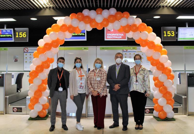 El acto de inauguración, en el que un arco de globos con los colores corporativos de la compañía ha dado la bienvenida a los pasajeros, ha contado con la presencia del jefe de Gabinete de Dirección en el Aeropuerto Adolfo Suárez Madrid-Barajas, Iñaki Aznar, y la Outbase Manager de Skyup, Olena Bandurko, acompañados por personal de la compañía aérea y de handling de Iberia.