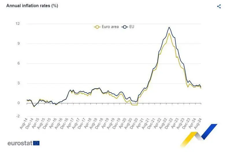 La inflación anual de la eurozona cae al 2,2% en agosto, cuatro décimas menos que respecto a julio (2,6%), lo que lleva a registrar el dato más bajo en 3 años. Según los datos publicados por la Oficina de Estadística de la Unión Europea (Eurostat), el IPC subió un 2,4% anual y un 0,1% intermensual en la Unión Europea.