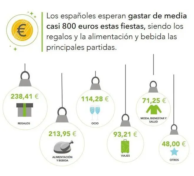 Los españoles esperan gastar de media cerca de 800 euros durante estas fiestas, según Oney