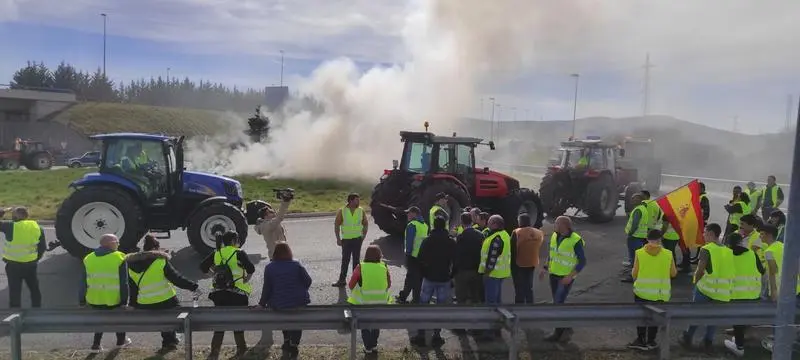 Las tractoradas convocadas este martes en tres puntos de Cantabria coincidiendo con otras en toda la cornisa han logrado ya cortar los accesos a la A-8 y A-67 en Colindres, Unquera y Reinosa, además de que en este último punto han cortado totalmente la autovía.
