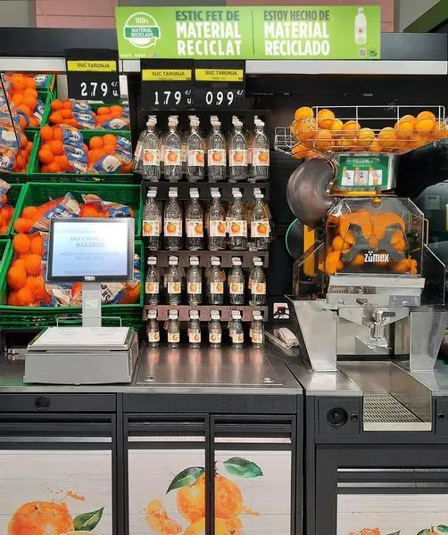 Mercadona ha introducido en todas las tiendas de la cadena una nueva botella de zumo elaborada 100% con plástico reciclado, por lo que deja de utilizar 700 toneladas de plástico virgen al año, lo que "fomenta la economía circular y disminuye el impacto ambiental".
