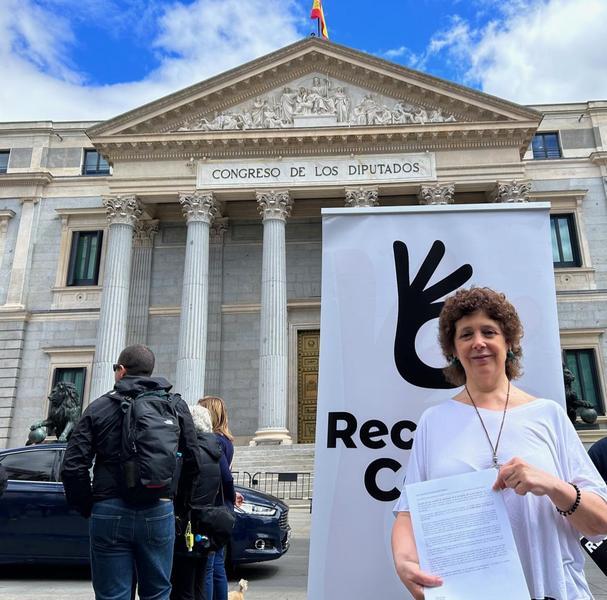"Los ciudadanos tenemos derecho a recibir esta información con luz y taquígrafos, y más teniendo en cuenta el abismo actual entre los beneficios de la banca y el empobrecimiento", asevera Suárez ante las puertas del Congreso momentos después de registrar la solicitud a la comisión de peticiones.
