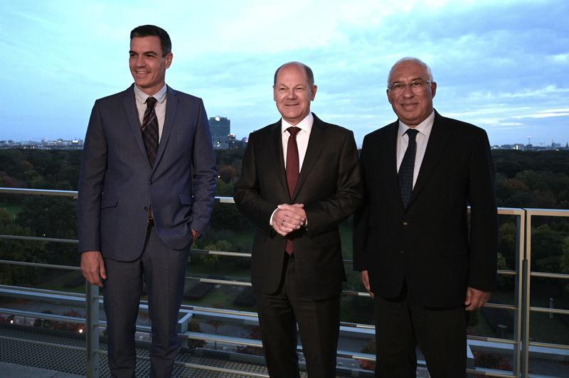 El presidente del Gobierno, Pedro Sánchez, ha reclamado este viernes junto al canciller alemán, Olaf Scholz, y el primer ministro de Portugal, António Costa, la "gran importancia" de "acelerar" la "construcción de interconectores energéticos" dentro de la Unión Europea a través del gasoducto Midcat para garantizar "la seguridad del suministro" en la UE.