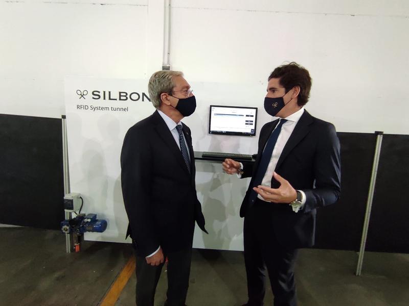 Acompañado por el consejero delegado de Silbon, Pablo López, Velasco ha comprobado la eficacia del primer túnel de identificación por radiofrecuencia del nuevo centro logístico, un sistema de almacenamiento y recuperación de datos remotos que facilita la distribución de la mercancía.