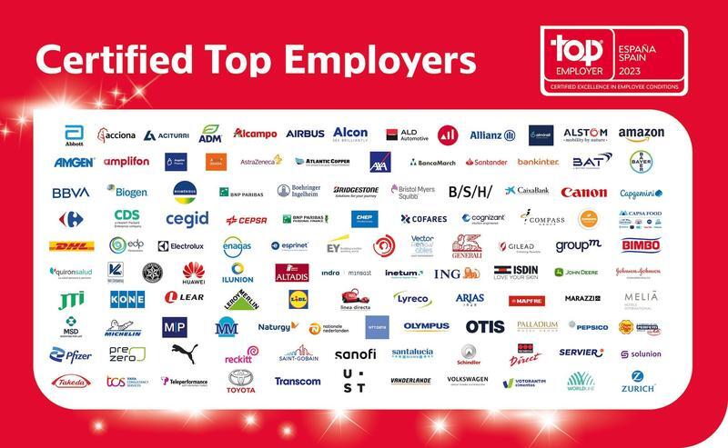 Asimismo, 45 de las compañías 'Top Employers España' han sido certificadas a su vez como 'Top Employers Europa 2023'. La certificación continental la obtienen las empresas que la han conseguido al menos en cinco países de Europa.