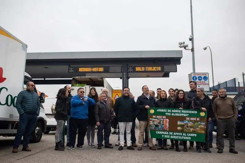 Una treintena de agricultores se ha concentrado esta mañana sin incidentes cerca de las puertas de Mercamadrid en medio de un fuerte despliegue policial, que ha impedido cualquier problema de movilidad de los camiones que entran o salen de este macrocentro logístico.
