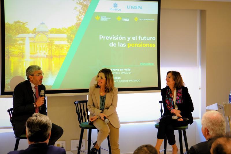 El sistema de previsión social en España y el futuro de las pensiones fue el tema abordado en la mesa redonda que juntó a Del Valle y Ricón. Esta última aseguró que el sistema de pensiones en España es un pilar "fundamental" del Estado de bienestar y que debe apostarse por un "sistema multipilar", en el que el público sea "todo lo generoso que la economía española pueda permitirse", y se complemente con dos más, el de empresa y el individual, que estimulen el ahorro mediante "formación, información y un tratamiento fiscal adecuado y estable".