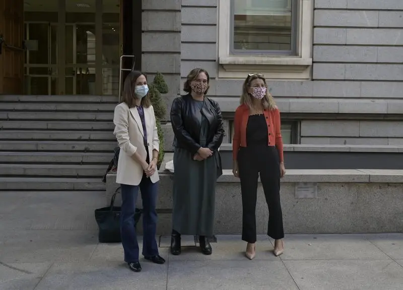Colau avisa de que la ley no puede ser "recortada ni descafeinada" y Belarra dice que, por Podemos, habría llegado "antes y más lejos"