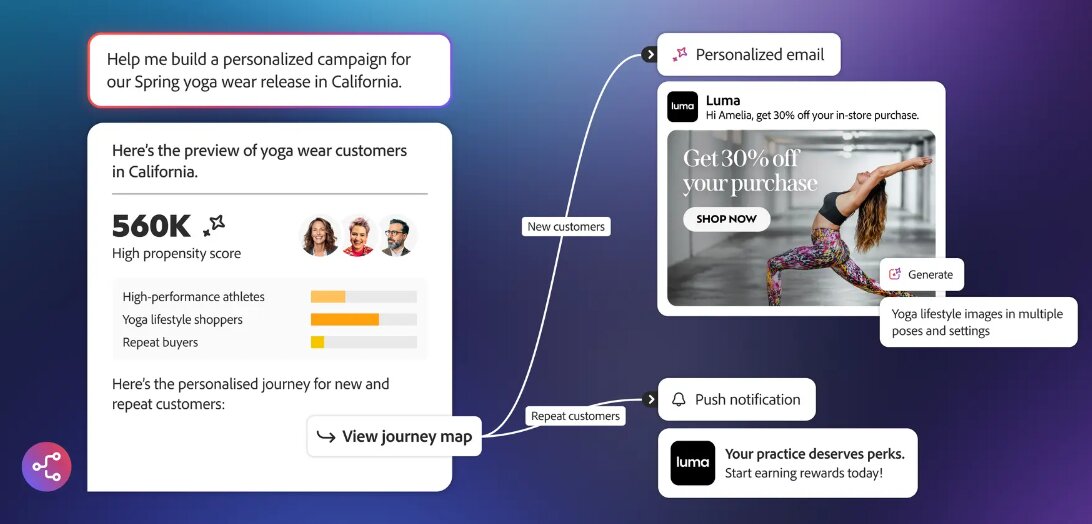 Este hecho revela el verdadero campo de batalla: quién controla la orquestación. En un mercado donde el contenido se genera barato y la segmentación se ha comoditizado, la ventaja pasa por el motor que decide “qué hacer” y “cuándo hacerlo” con el cliente, canal por canal. Adobe lleva tiempo construyendo ese argumento sobre su Experience Platform y su capa de orquestación de agentes, con componentes como interfaz conversacional, motor de razonamiento, agentes especializados y base de conocimiento.
