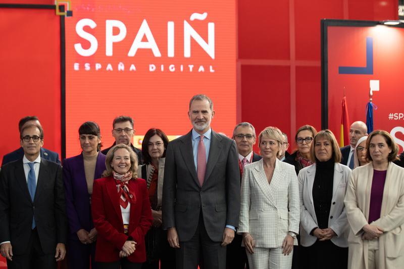 La vicepresidenta acudió el domingo a la tradicional cena con el Rey y ha participado junto a este en su visita inicial a la fiesta y la comida privada que realiza con representantes de empresas. En el encuentro con medios, ha alabado el interés del monarca por el sector tecnológicos.