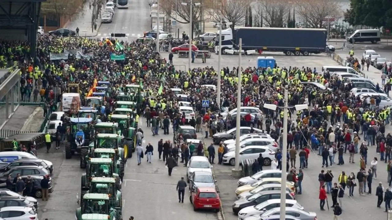 Unos 4.500 agricultores y ganaderos según la Policía, 15.000 según el sector, se movilizan en Sevilla
