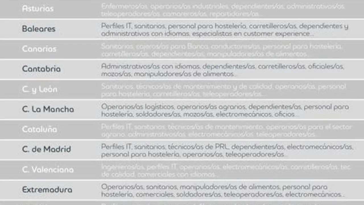 MADRID, 16 (EUROPA PRESS) Los perfiles en IT, sanitarios y técnicos dedicados a la industria y la construcción se encuentran entre los más…