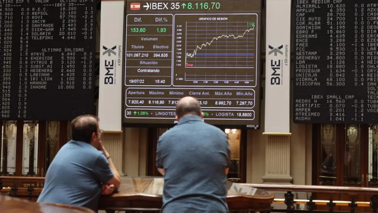 El Ibex 35 cae un 0,4% en la media sesión, aunque se mantiene por encima de los 8.000 enteros