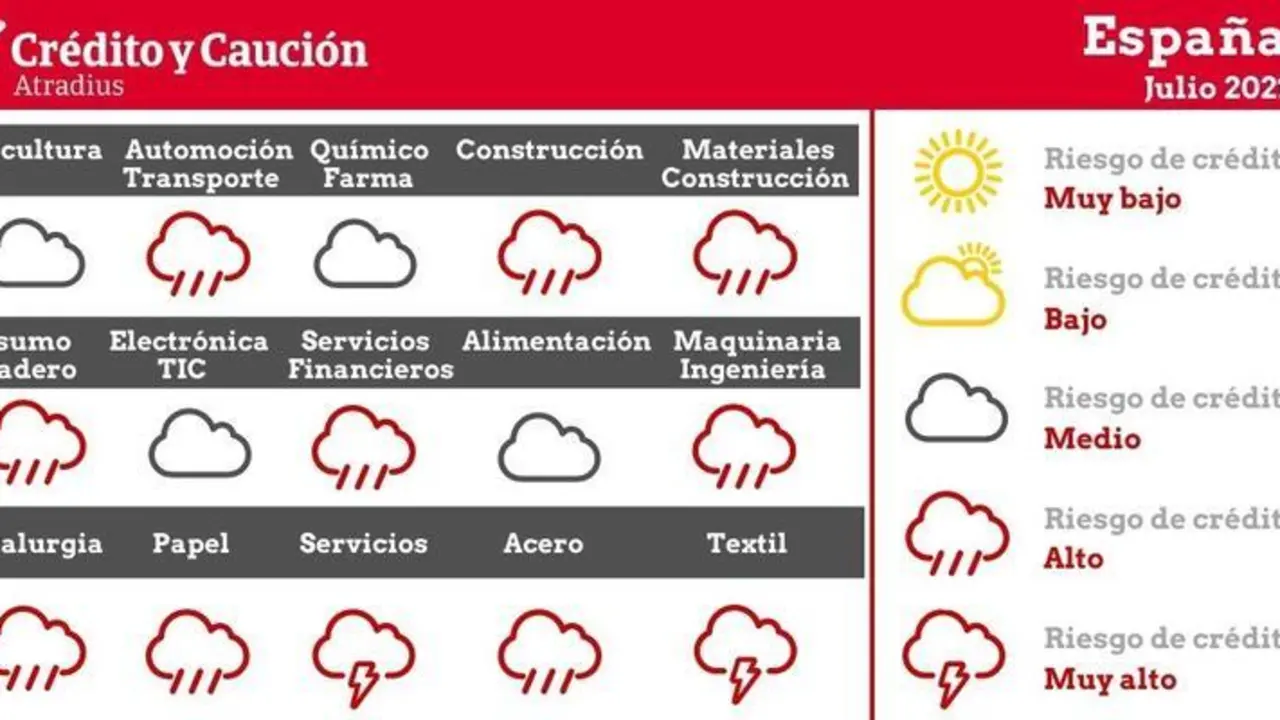 MADRID, 16 (EUROPA PRESS) Los sectores de servicios y de textil presentan un riesgo de impago "muy alto" en España, según el último análisis…